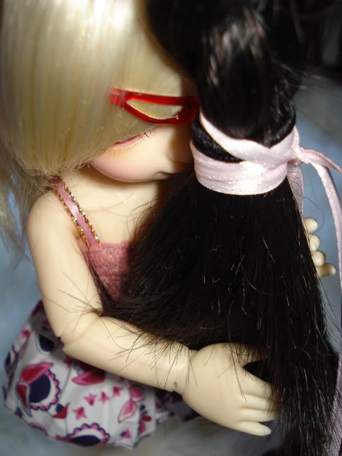Little One continues to play with his hair, as if its something shes done many times before with him, she still doesnt speak, but hums to herself a little tune, her hands pressing against his chest and shakes her head no~