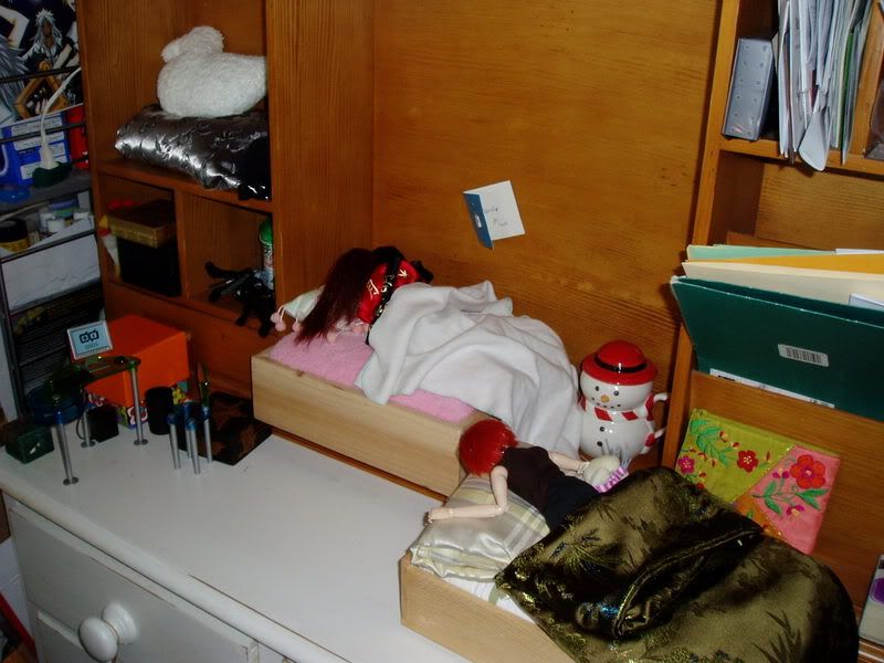 *covering up his laughter* When I asked him to sleep with me last night, he fell down from his perch! Were he not a demon, I'd worry that the fall hurt him.